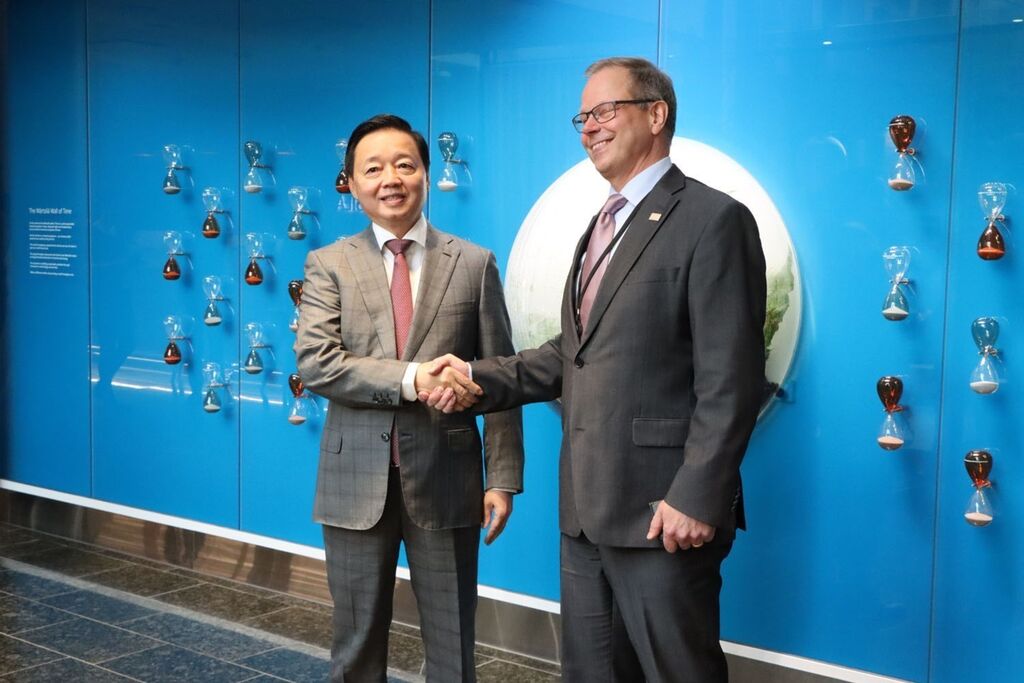 | Anders Lindberg, vice-président principal du groupe Wärtsilä, et le vice-Premier ministre Trân Hông Hà (gauche), le 27 novembre en Finlande. |