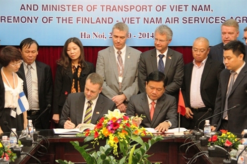 | Cérémonie de signature d'un accord de coopération dans le transport aérien entre le Vietnam et la Finlande, le 20 octobre à Hanoi. |