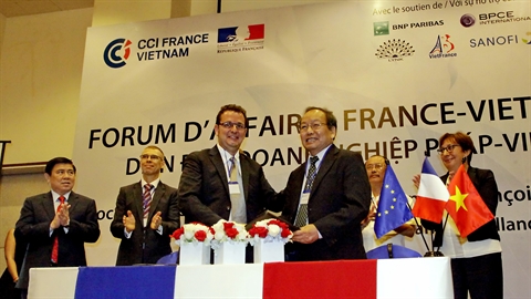 La France est actuellement un des plus importants investisseurs européens au Vietnam, avec un capital enregistré de 3,4 milliards de dollars. Selon Martine Pinville, secrétaire d’État chargée du commerce, de l’artisanat, de la consommation et de l’économie sociale (rattaché au ministère de l’Économie et des Finances), le Vietnam est un pays ayant une des croissances les plus rapides de la région. Une fois que l’Accord de libre-échange Vietnam-Union européenne entré en vigueur, la coopération entre les entreprises vietnamiennes et françaises bénéficiera de davantage d’opportunités, notamment dans les produits pharmaceutiques, agricoles et alimentaires.
