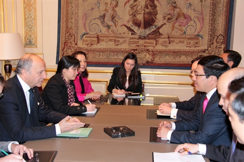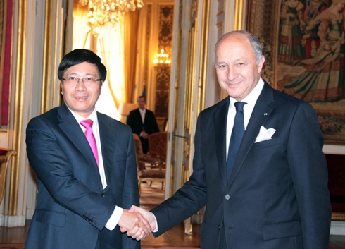 Durant sa tournée, le ministre des AE, Pham Binh Minh, a rendu une visite de courtoisie au Premier ministre français Jean-Marc Ayrault. Il a eu une entrevue avec le président du Sénat, Jean-Pierre Bel, et le président de l'Assemblée nationale, Claude Bartolone, et s'est entretenu avec le ministre français des AE, Laurent Fabius.