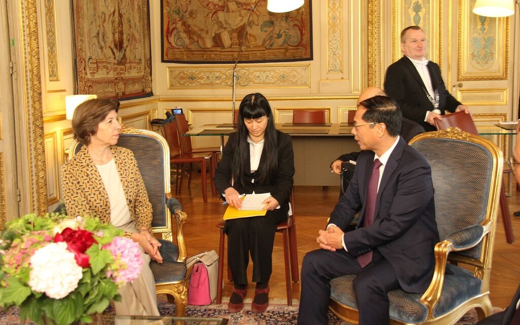 | Le ministre Bùi Thanh Son s'entretient avec son homologue française Catherine Colonna, le 5 juin à Paris. |