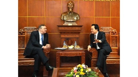 | Le ministre vietnamien de l’Éducation et de la Formation, Phùng Xuân Nha (droite), et l’ambassadeur de Hongrie au Vietnam, Öry Csaba, le 13 septembre à Hanoï. |