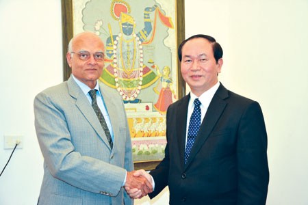 | Le ministre vietnamien de la Police , Trân Dai Quang (à droite), affirme toujours les relations d'amitié traditionnelle et de partenariat stratégique avec l'Inde. |