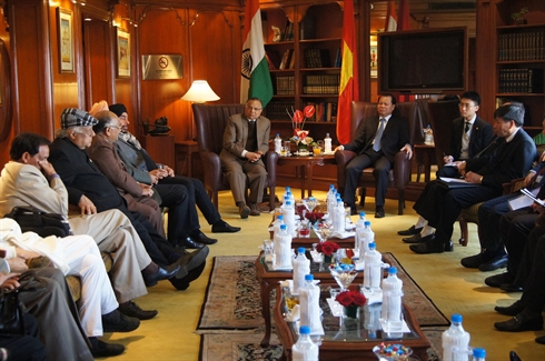 | Le vice-Premier ministre Vu Van Ninh (centre, droite) reçoit le 9 janvier à New Delhi une délégation de l'Association d'amitié Inde-Vietnam. Photo : Minh Ly/VNA/CVN |