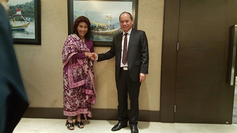 | Le vice-ministre vietnamien de l’Agriculture et du Développement rural, Vu Van Tam, et la ministre indonésienne des Affaires maritimes et de la Pêche, Susi Pudjiastuti, le 26 juillet à Jakarta. |