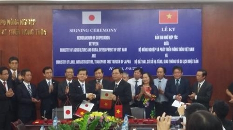 | Cérémonie de signature d'un mémorandum de coopération Vietnam - Japon, le 7 août à Hanoï. |
