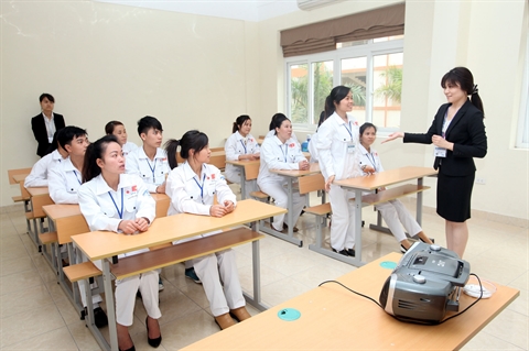 | Un cours de japonais à des aides-soignants vietnamiens à Hung Yên (Nord). |