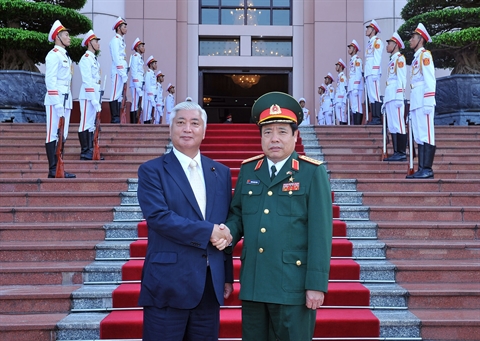 | Les ministres vietnamien Phùng Quang Thanh (droite) et japonais Gen Nakatani. |