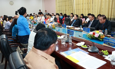 | Aly Vong Nor Bun Tham (debout) lors de la séance de travail avec les représentants de l'Université syndicale à Hanoï, le 19 juillet. |