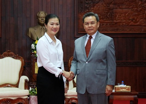 La vice-présidente du Comité central du FPV, Truong Thi Ngoc Anh et une délégation l'accompagnant, en visite du 5 au 8 avril au Laos, a été reçue le 7 avril à Vientiane par le président du Front lao pour l'édification nationale, Saysomphone Phomvihane.