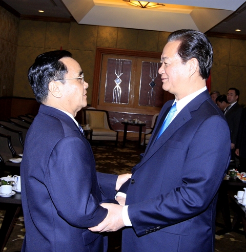 | Le Premier ministre lao Thongsing Thammavong (gauche) et son homologue vietnamien Nguyên Tân Dung. |