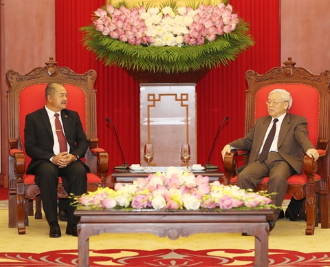 En recevant mardi après-midi 1er août à Hanoï à Hanoï une délégation du Parti populaire révolutionnaire du Laos (PPRL) conduite par Kikeo Khaykhamphithun, secrétaire du Comité central du PPRL, président du Conseil des sciences sociales du Laos en visite de travail au Vietnam, le leader du Parti communiste du Vietnam (PCV) a affirmé que le Vietnam appuie fermement le processus de renouveau au Laos, estimant que le peuple laotien obtiendra des réalisations plus importantes et réalisera avec succès la Résolution adoptée lors du Xe Congrès national du PPRL.