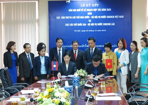 | Signature de coopération entre les deux Archives vietnamienne et laotienne, le 3 décembre à Hanoï. |