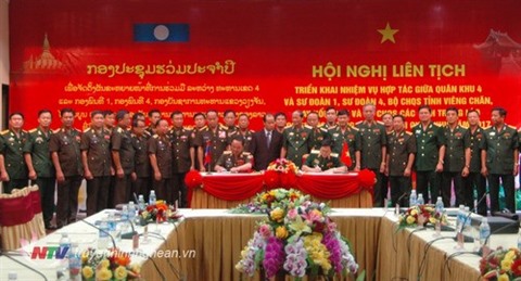 | Signature d'un accord de coopération frontière entre le commandement de la IVe Région militaire du Vietnam et les divisions N°1 et N°4 du commandement de Vientiane et de Xaysomboun. |