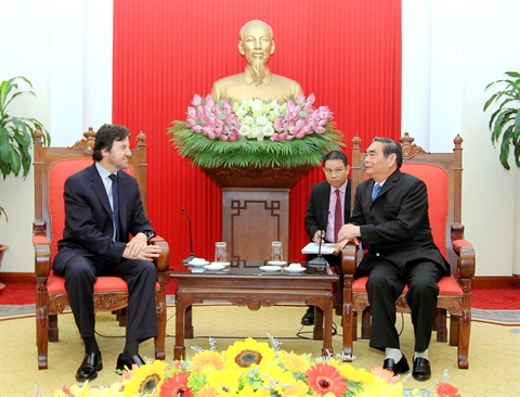 | Lê Hông Anh (droite) et Javier Vega Camargo, le 27 juillet à Hanoi. |