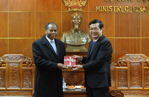 | Le vice-ministre vietnamien de l’Éducation et de la Formation, Nguyên Van Phuc (droite) et l’ambassadeur du Mozambique, Gamiliel Munguambe, le |
