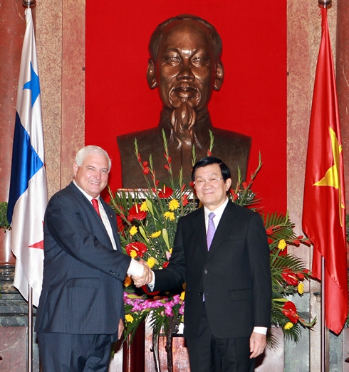 Après la cérémonie d'accueil, les deux chefs d'État vietnamien et panaméen se sont entretenus. Ils ont vivement apprécié les résultats de la coopération bilatérale dans plusieurs domaines lors de ces derniers temps. Le commerce bilatéral a nettement progressé ces dernières années en passant de 50 millions de dollars en 2005 à 245 millions en 2011, et s'est élevé au premier semestre de cette année à 120 millions de dollars. Le Vietnam exporte pour l'essentiel du bois, des chaussures et des sandales, des produits de l'artisanat et des machines agricoles. Le Panama compte actuellement 9 projets d'investissement au Vietnam représentant plus de 51 millions de dollars de capitaux.