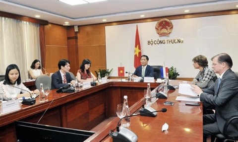 | Le ministre vietnamien de l’Industrie et du Commerce, Trân Tuân Anh, s'entretient par téléphone avec la ministre néerlandaise du Commerce extérieur et de la Coopération au Développement, Sigrid Kaag. |