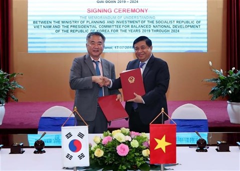 Le protocole d’accord de coopération pour la période 2019-2024 entre le ministère vietnamien du Plan et de l’Investissement et la Comité présidentiel pour un développement national équilibré de la République de Corée sert de base juridique pour le partage d’informations sur les politiques, stratégies liées au développement national équilibré et sur les programmes importants en matière d’amélioration de la qualité des ressources humaines des deux pays.