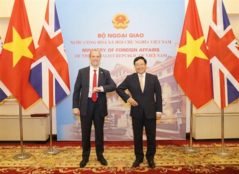 Le Vietnam et le Royaume-Uni ont publié une "Déclaration conjointe sur le partenariat stratégique Vietnam-Royaume-Uni: aller de l’avant dans les dix ans" après l’entretien à Hanoï le 30 septembre entre le vice-Premier ministre vietnamien et le ministre des Affaires étrangères Pham Binh Minh et le premier secrétaire d’État britannique et secrétaire d’État des Affaires étrangères, du Commonwealth et des Affaires de développement Dominic Rabb.