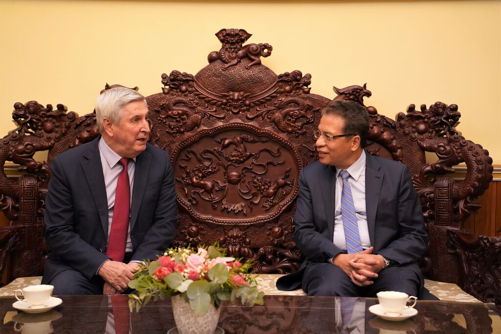 | L'ambassadeur du Vietnam en Russie, Dang Minh Khôi (droite), et le premier vice-président de la Douma d'État et vice-président du Parti communiste de la Fédération de Russie Ivan Melnikov. |