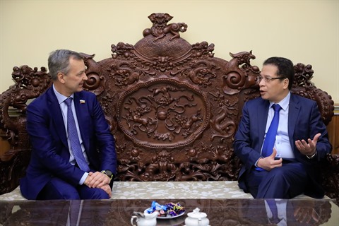| L’ambassadeur du Vietnam en Russie, Dang Minh Khôi (droite), et Andreï Yatskin, premier vice-président du Conseil de la Fédération de Russie. |