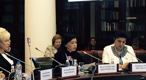| La ministre vietnamienne de la Santé, Nguyên Thi Kim Tiên (centre), à Saint-Petersbourg, en Russie. |