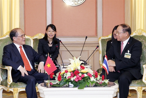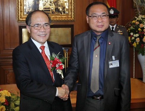 | Le président de l'AN, Nguyên Sinh Hùng (gauche), et son homologue thaïlandais Somsak Kiatsuranont. Photo: Nhan Sang/VNA/CVN |