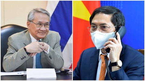 | Le ministre des Affaires étrangères Bùi Thanh Son (droite) et son homologue thaïlandais Don Pramudwinai. |
