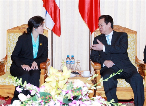 | Le Premier ministre Nguyên Tân Dung et son homologue thailandaise Mme Yingluck Shinawatra, le 27 octobre à Hanoi. |