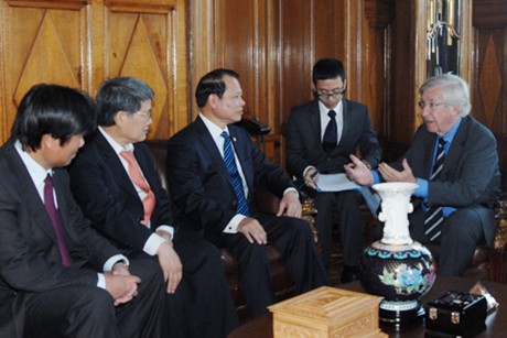| Le vice-Premier ministre vietnamien Vu Van Ninh (centre) rencontre le vice-président de l'Uruguay, Danilo Astori (droite). Photo : Chinhphu/CVN |