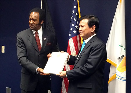 | Le vice-ministre vietnamien de la Défense, Nguyên Thành Cung (droite), lors de sa visite de travail à Washington et au Texas. |