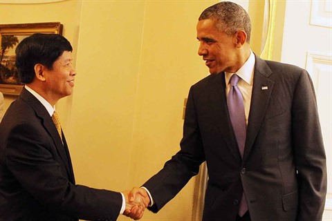 | L’ancien ambassadeur du Vietnam aux États-Unis, Nguyên Quôc Cuong (gauche), lors d’une rencontre avec l’ancien président américain Barack Obama. |
