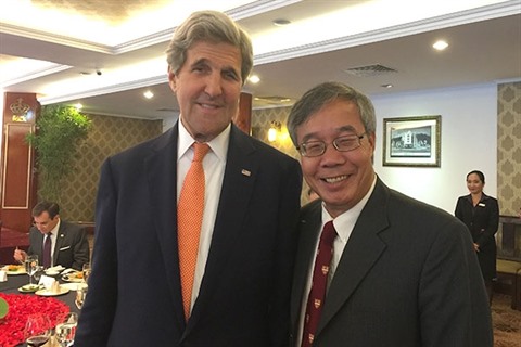 | Trân Duc Canh (droite) et l’ancien secrétaire d'État des États-Unis, John Kerry, lors de sa visite au Vietnam en 2016. |