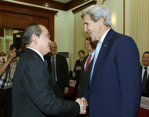 John Kerry a informé son interlocuteur des résultats de ses rencontres avec le président Trân Dai Quang et le Premier ministre Nguyên Xuân Phuc. Réaffirmant le rôle important de l’Université Fulbright Vietnam, il a souligné qu’il s’agissait d’une grande opportunité pour le pays de développer une université prestigieuse de niveau régional et mondial. John Kerry a également affiché sa volonté d’aider Hô Chi Minh-Ville à attirer des fonds étrangers et à développer une ville intelligente.