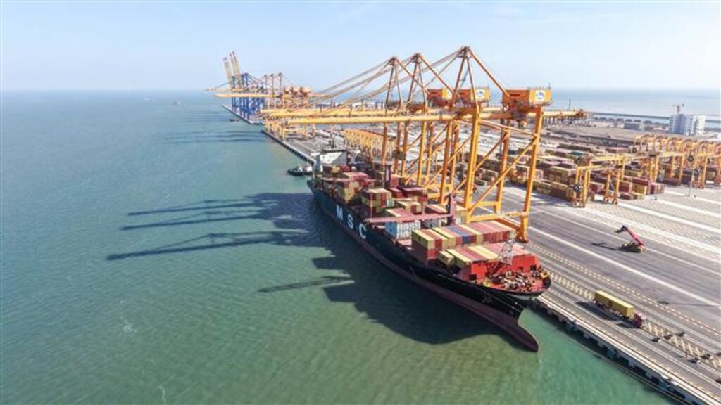 | Chargement et déchargement de marchandises d'exportation au port international à conteneurs de Hai Phong. |