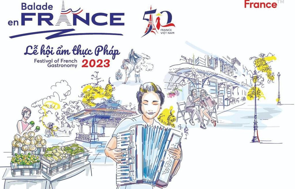 | L’affiche de la “Balade en France”, l’évènement qui se tiendra du 14 au 16 avril à Hanoï pour célébrer les 50 ans des relations diplomatiques bilatérales. |