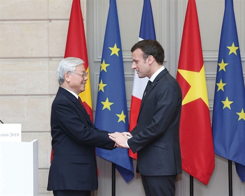 Depuis le début du quinquennat et surtout en 2018, Emmanuel Macron a eu plusieurs activités illustrant la politique de réorientation vers l'Asie. Il a reçu le Premier ministre indien en juin 2017, et s'est rendu en Chine en janvier et en Inde en mars 2018. Le renforcement des relations avec le Vietnam, dont témoigne la dernière visite officielle en France du secrétaire général du Parti communiste du Vietnam (PCV) Nguyên Phu Trong, est sans doute compatible avec la logique du pivot français vers l’Asie-Pacifique, déjà évoquée en 2013 par Laurent Fabius, qu'Emmanuel Macron ne fait que reprendre, en bénéficiant au passage du retrait des États-Unis de la zone. La France veut s'affirmer comme une puissance étroitement associée aux enjeux en Indo - Pacifique, et le Vietnam est un partenaire tout naturel.
