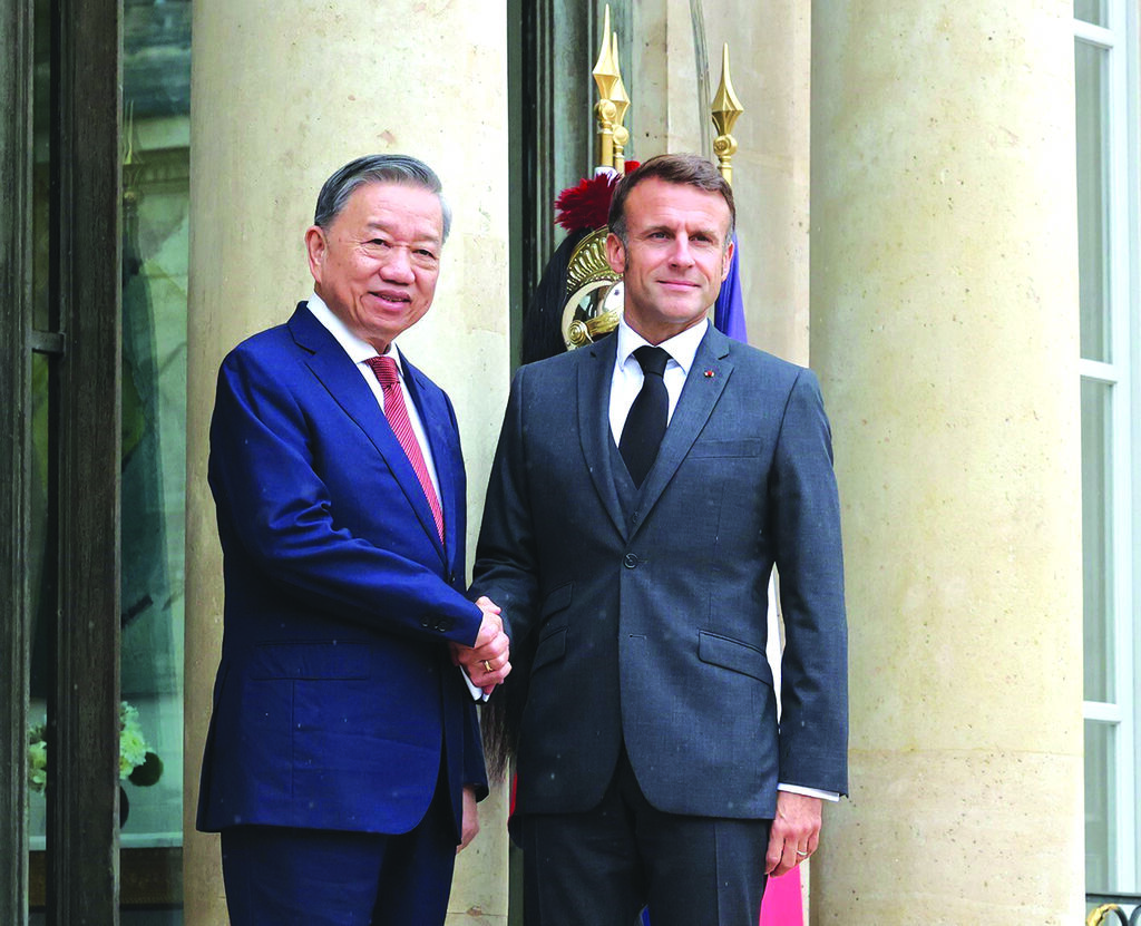 | Le secrétaire général du Parti et président vietnamien Tô Lâm (gauche) et le président français Emmanuel Macron, le 7 octobre 2024 à Paris. |