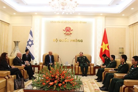 | Le général de corps d’armée, chef d’état-major adjoint de l’Armée populaire du Vietnam, Pham Ngoc Minh (droite) et le directeur du Département de la coopération et des exportations du ministère israélien de la Défense, Mishel Ben Barush. |