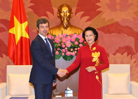| La présidente de l'AN vietnamienne, Nguyên Thi Kim Ngân, et le ministre italien de la Justice, Andrea Orlando, le 26 octobre à Hanoï. |