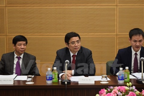 | Le secrétaire du Comité central du PCV, président de la Commission centrale de l’organisation du PCV, Pham Minh Chinh (centre), au 7e échange théorique entre le PCV et PCJ. |