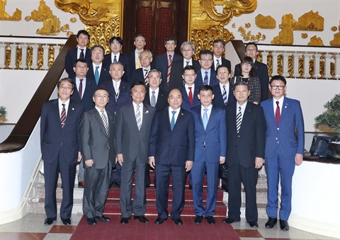 | Le Premier ministre Nguyên Xuân Phuc (1er plan, centre) et les délégués de la préfecture japonaise de Fukuoka. |