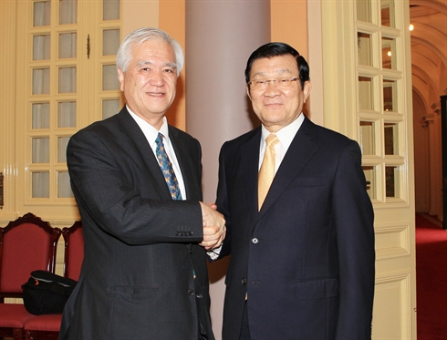 Le président Truong Tân Sang a fortement apprécié l'objet de la visite de son interlocuteur qui est d'approfondir davantage la coopération entre les deux pays, comme leur coordination dans la négociation de l’Accord de partenariat trans-pacifique (TPP). Il a aussi remercié le Japon pour sa décision de maintenir les APD et de promulguer des textes pour renforcer la coopération avec le Vietnam.