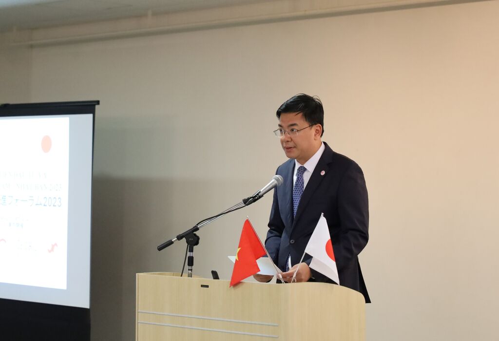 | L'ambassadeur du Vietnam au Japon, Pham Quang Hiêu, s'exprime au forum. |