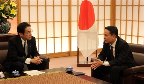 La délégation de la VNA a été reçue par le ministre japonais des Affaires étrangères, Fumio Kishida, qui a souligné les développements notables des relations bilatérales au cours de l'année dernière, notamment après l'établissement des relations de partenariat stratégique approfondi pour la paix et la prospérité en Asie, lors de la visite du président vietnamien Truong Tân Sang en mars 2014 au Japon.