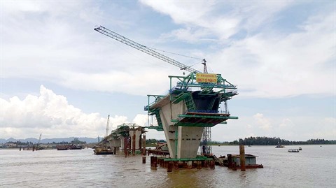 | Les travaux du pont maritime Tân Vu - Lach Huyên dans la ville portuaire de Hai Phong (Nord), un des projets bénéficiaires des APD japonaises. |