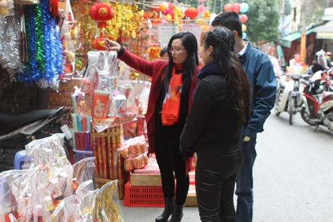 | Les habitants achètent des offrandes en papier pour le culte des Génies du Foyer lors du 23e jour du 12e mois lunaire. |