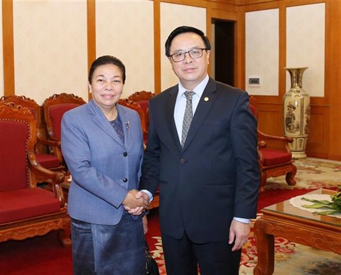 Hoàng Binh Quân, président de la Commission des relations extérieures du Comité central du Parti communiste du Vietnam, a remercié son interlocutrice pour son arrivée au Vietnam pour assister à la cérémonie marquant le 70e anniversaire de la Journée traditionnelle de sa Commission et remettre l’Ordre du travail de première classe du Laos. Il a déclaré que sa Commission continuerait de collaborer étroitement avec son homologue laotienne pour appliquer au mieux les accords bilatéraux et contribuer à l’approfondissement des relations vietnamo-laotiennes en tous domaines, dans l’intérêt des deux peuples, pour la paix, la stabilité, la coopération et le développement dans la région comme dans le monde.