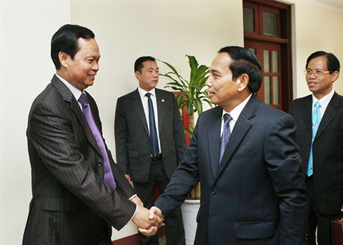 | L’inspecteur général du gouvernement Huynh Phong Tranh (gauche), et son homologue lao, Bounthong Chitmany, le 7 juillet à Hanoi. |